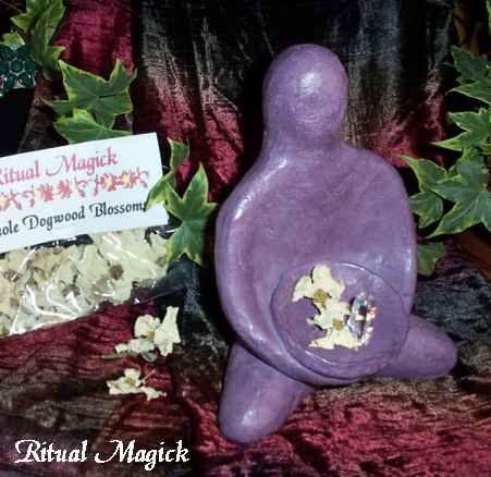 A meditative figure sits ready to receive your offerings or petitions. The deep purple color reminds us of the spiritual nature of life. Suitable for people of any faith to use in any setting; add flowers, coins, gem stones, rune stones, or any meaningful object to offer thanks or communicate needs to the realm of Deity. The Dogwood flowers seen in the picture are not included. Made of purple Gypsumstone. Full size measures approx. 7½”.