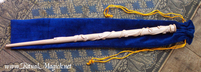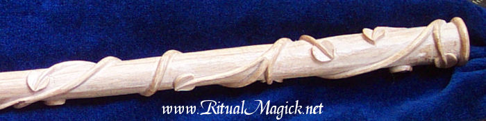 This lovely vining wand features hand carved leaves and briar like vines. Includes a wand storage pouch. The pouch color & style may vary from the picture shown. Measures approx. 14″ in length.