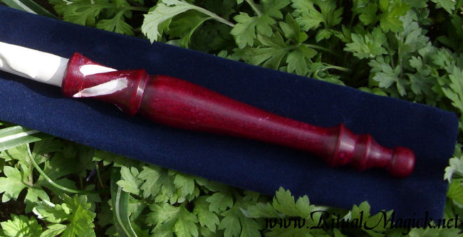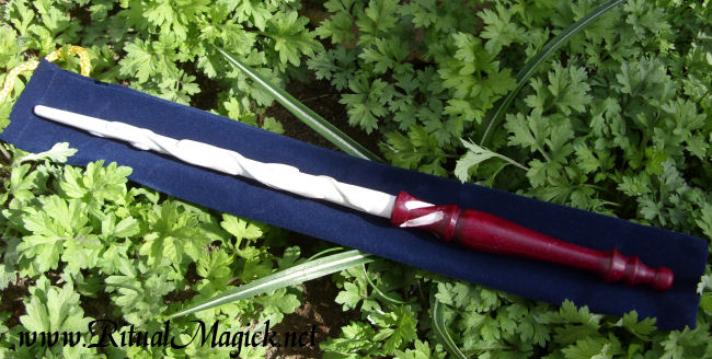 This wand features hand carved vines with a red handle and white shaft. Includes a wand storage pouch. The pouch color & style may vary from the picture shown. Measures approx. 14½” in length.
